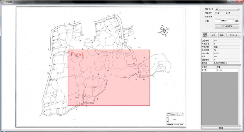 膨大な枚数のある公図から問い合わせの該当地番を含む公図を探すのは多くの時間を要します。公図閲覧システムは、地番図上より地番検索により公図を瞬時に呼び出し、公図の交付業務を支援するソフトウェアです。